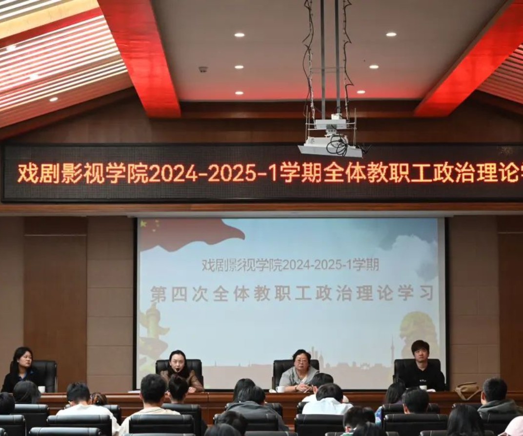 在深入学习贯彻党的最新理论成果,不断提升教职工队伍政治素养的大背景下,戏剧影视学院于2024年10月28日下午14:30,在文昌学宫三号会议室召开了第四次全体教职工政治理论学习会。院长赵淼石、党总支书记羊洋、副院长张颖锋、院长助理赵杉杉、各专业负责人及全体教职工参加了此次会议。